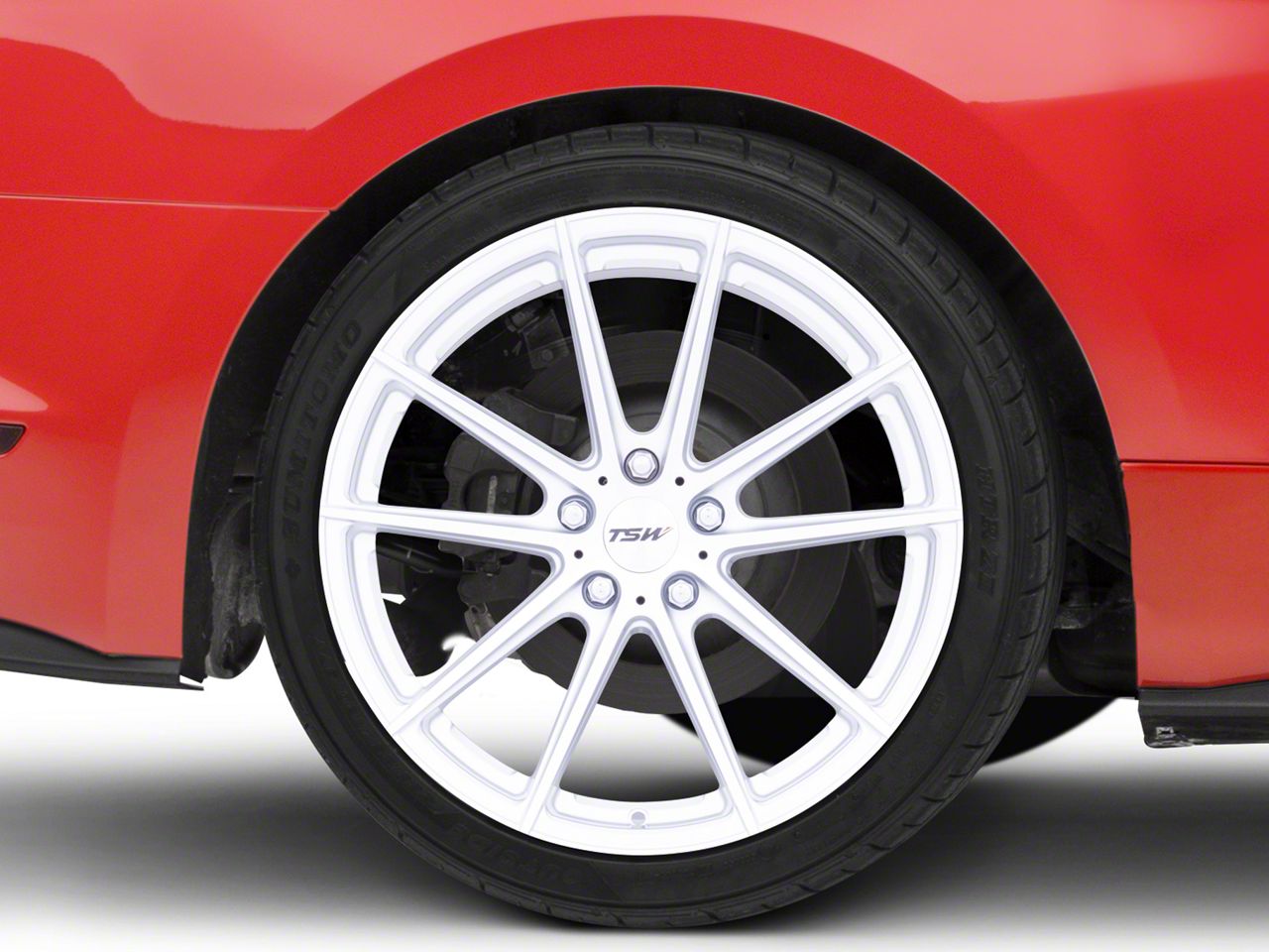 Application. This TSW Bathurst Silver Wheel; 20x11, with a backspace of 7.969 Inch, 202.5mm and a bolt pattern of 5 x 114.3mm (5 x 4.5-Inch), is designed to enhance alignment and driving stability. It's specially designed to fit the 2015-2023 Mustang EcoBoost, V6 models, sold individually.