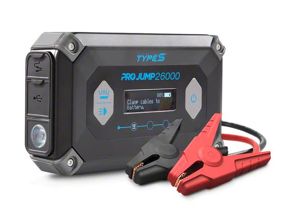 Powerful Jump Starter. The TYPE S 12V 9.0L ProJump Battery Jump Starter (26000mAh) is an essential tool for any driver. It effortlessly jump-starts vehicles with gas engines up to 9.0L and diesel engines up to 6.0L, eliminating the need for jumper cables and a second vehicle.