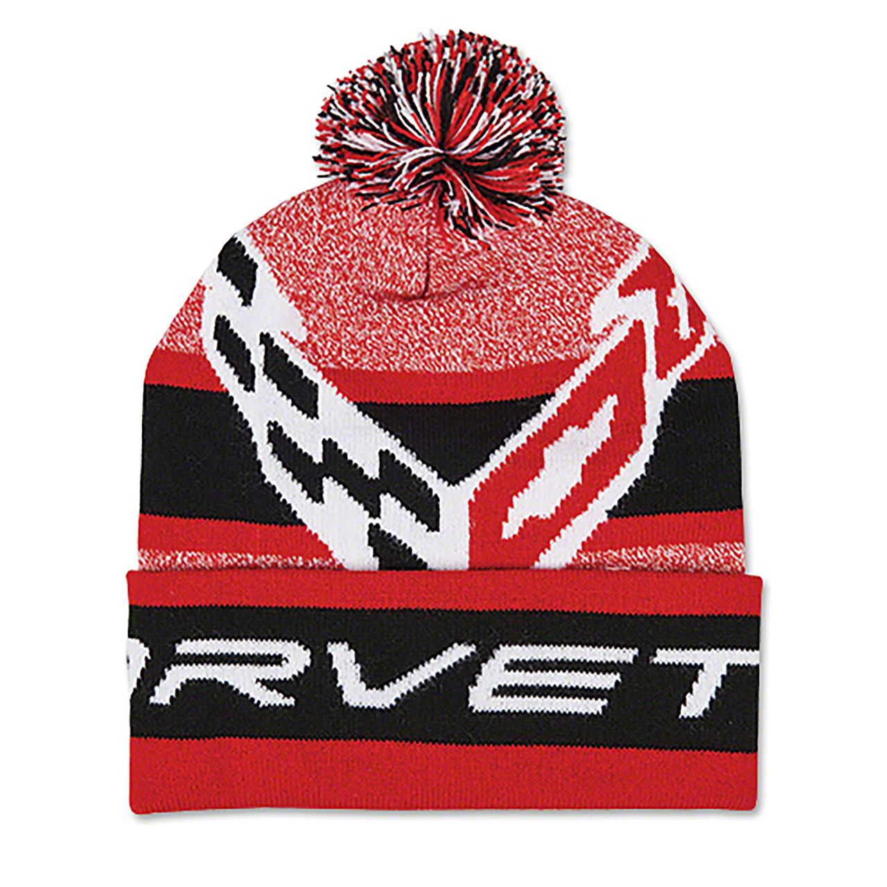 Beanie W/C8 Knitted With Pom Pom - Red - One Size Fits Most