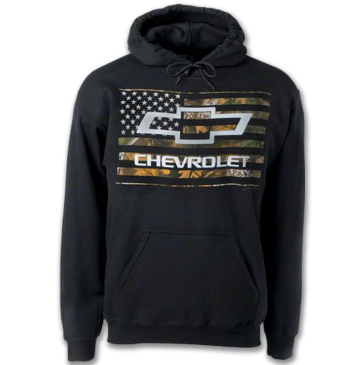 AmericanMuscle no longer carries the Chevy Bowtie on Camo Flag Hoodie. Please check out Home for an updated selection.