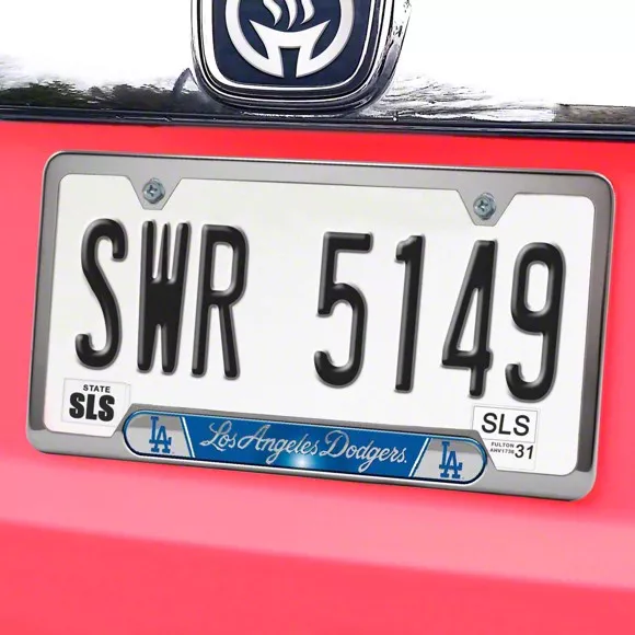 Embossed License Plate Frame with Los Angeles Dodgers Logo; Blue (Universal; Some Adaptation May Be Required)