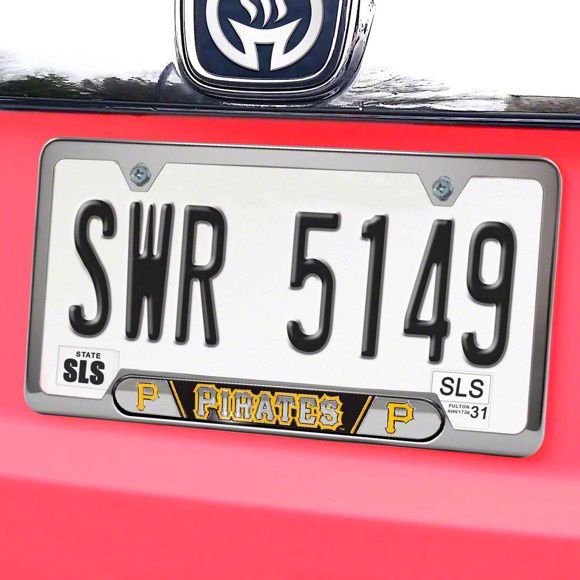 Embossed License Plate Frame with Pittsburgh Pirates Logo; Brown (Universal; Some Adaptation May Be Required)