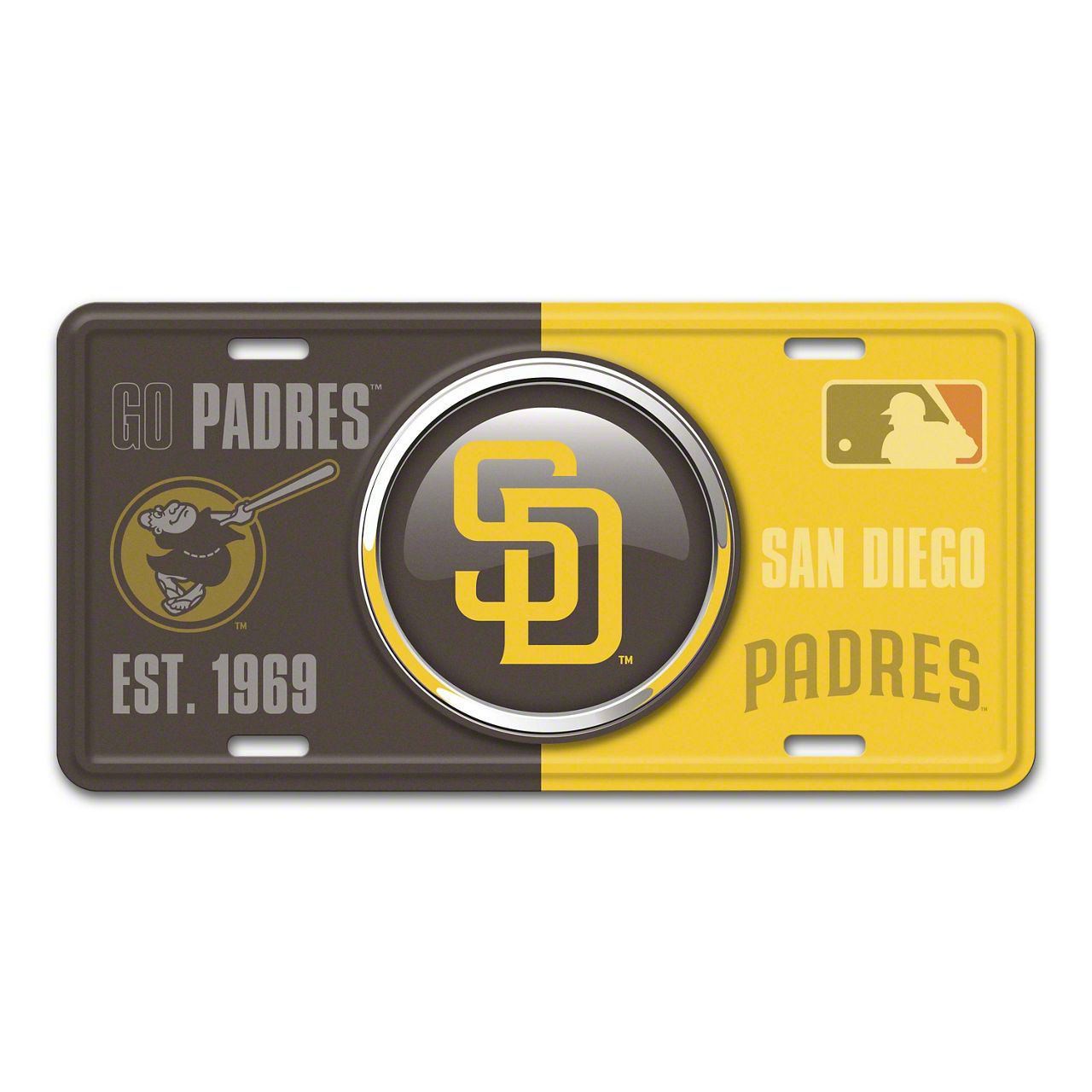 Embossed Metal License Plate with San Diego Padres Logo; Brown / Yellow (Universal; Some Adaptation May Be Required)
