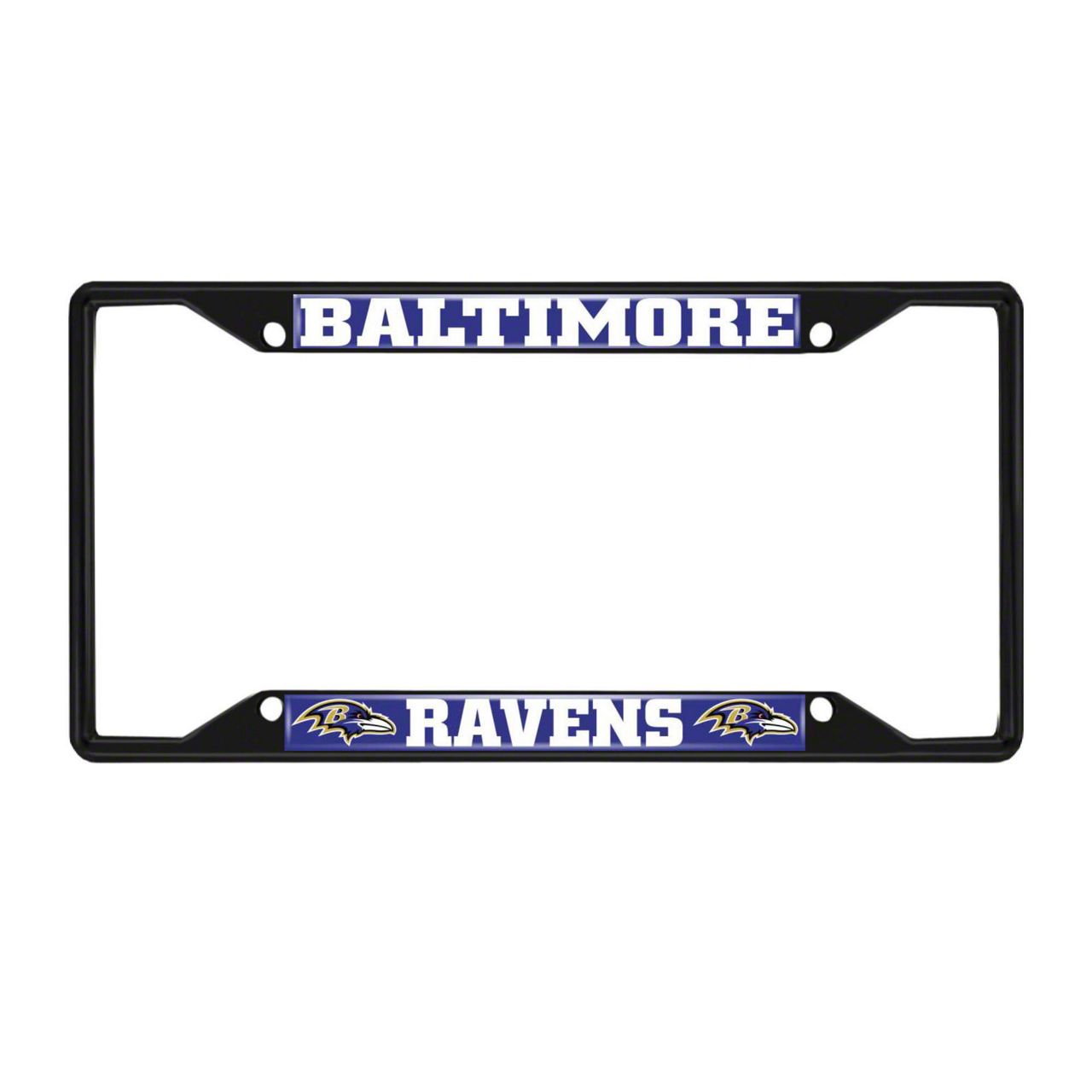 License Plate Frame with Baltimore Ravens Logo; Black and Blue (Universal; Some Adaptation May Be Required)
