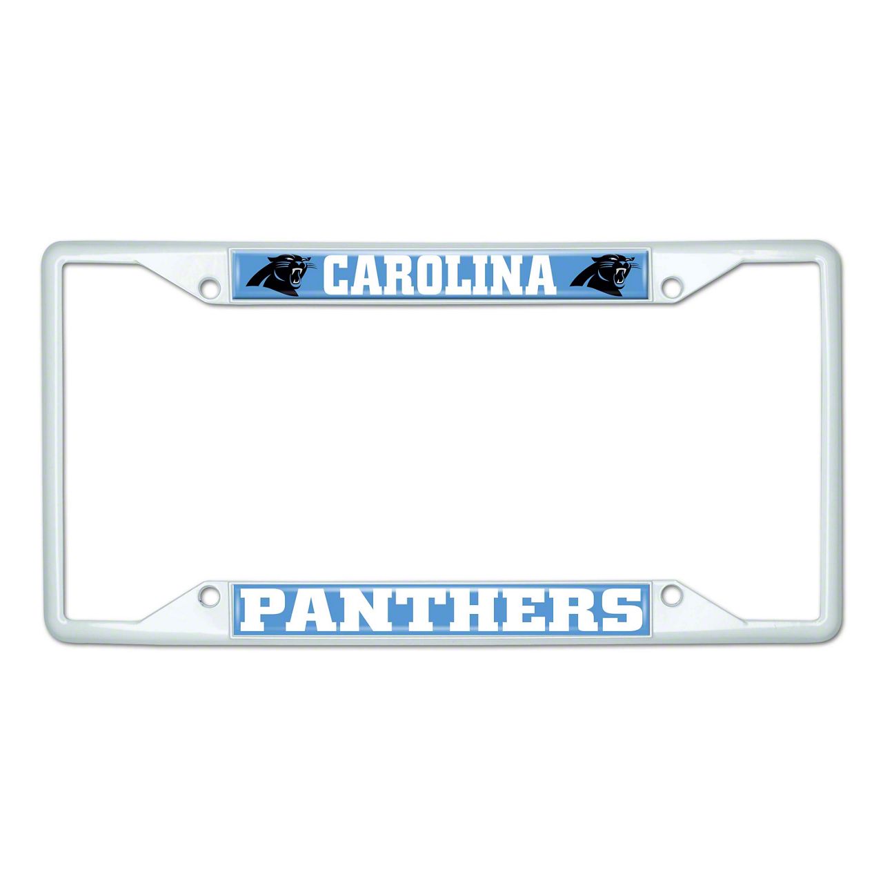 License Plate Frame with Carolina Panthers; White (Universal; Some Adaptation May Be Required)