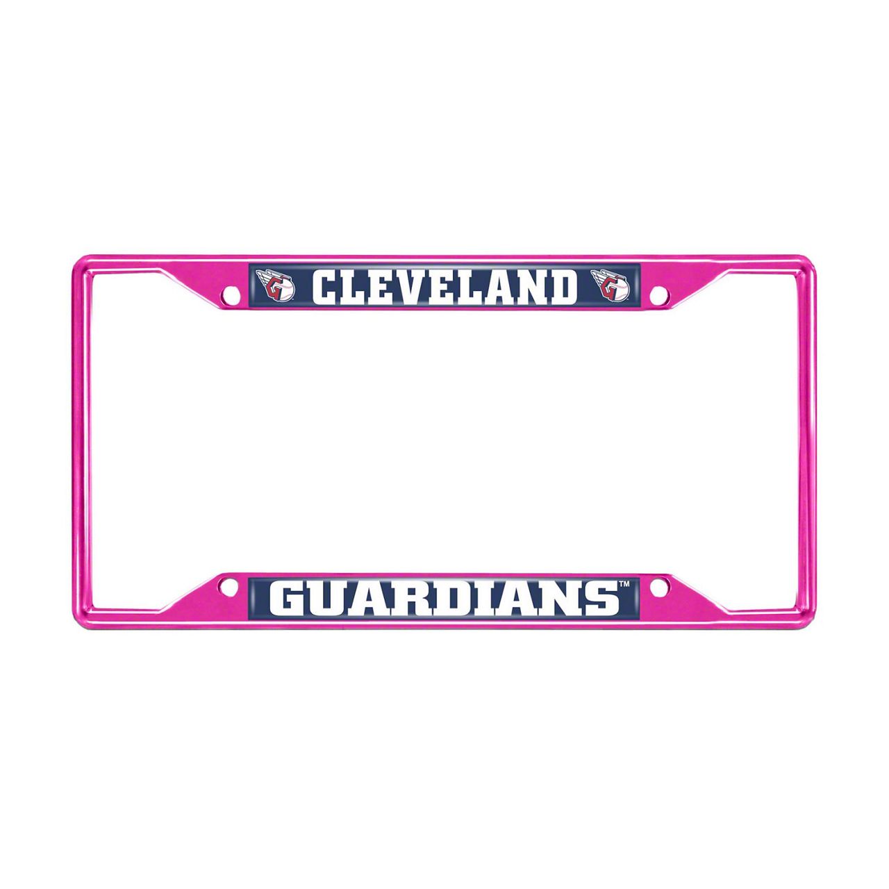 License Plate Frame with Cleveland Guardians; Pink (Universal; Some Adaptation May Be Required)