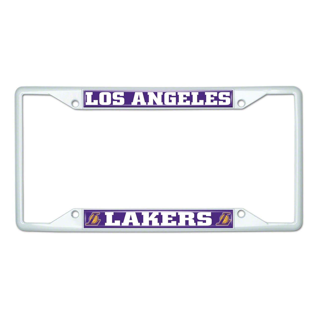 License Plate Frame with Los Angeles Lakers; White (Universal; Some Adaptation May Be Required)