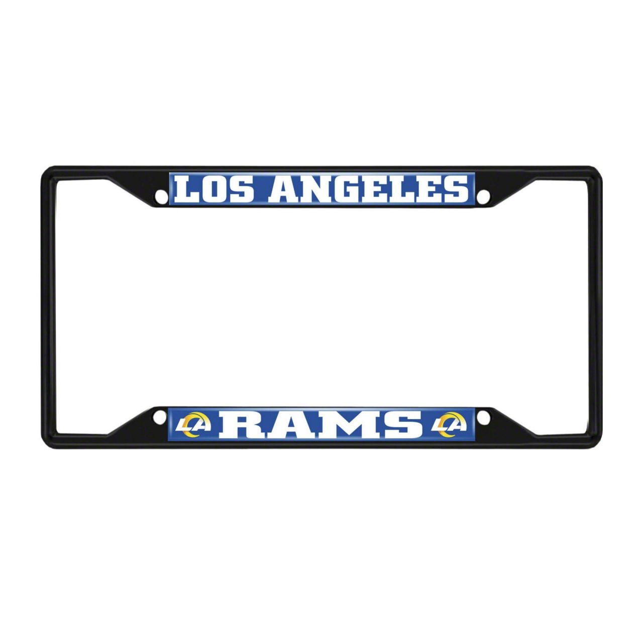 License Plate Frame with Los Angeles Rams Logo; Black and Blue (Universal; Some Adaptation May Be Required)