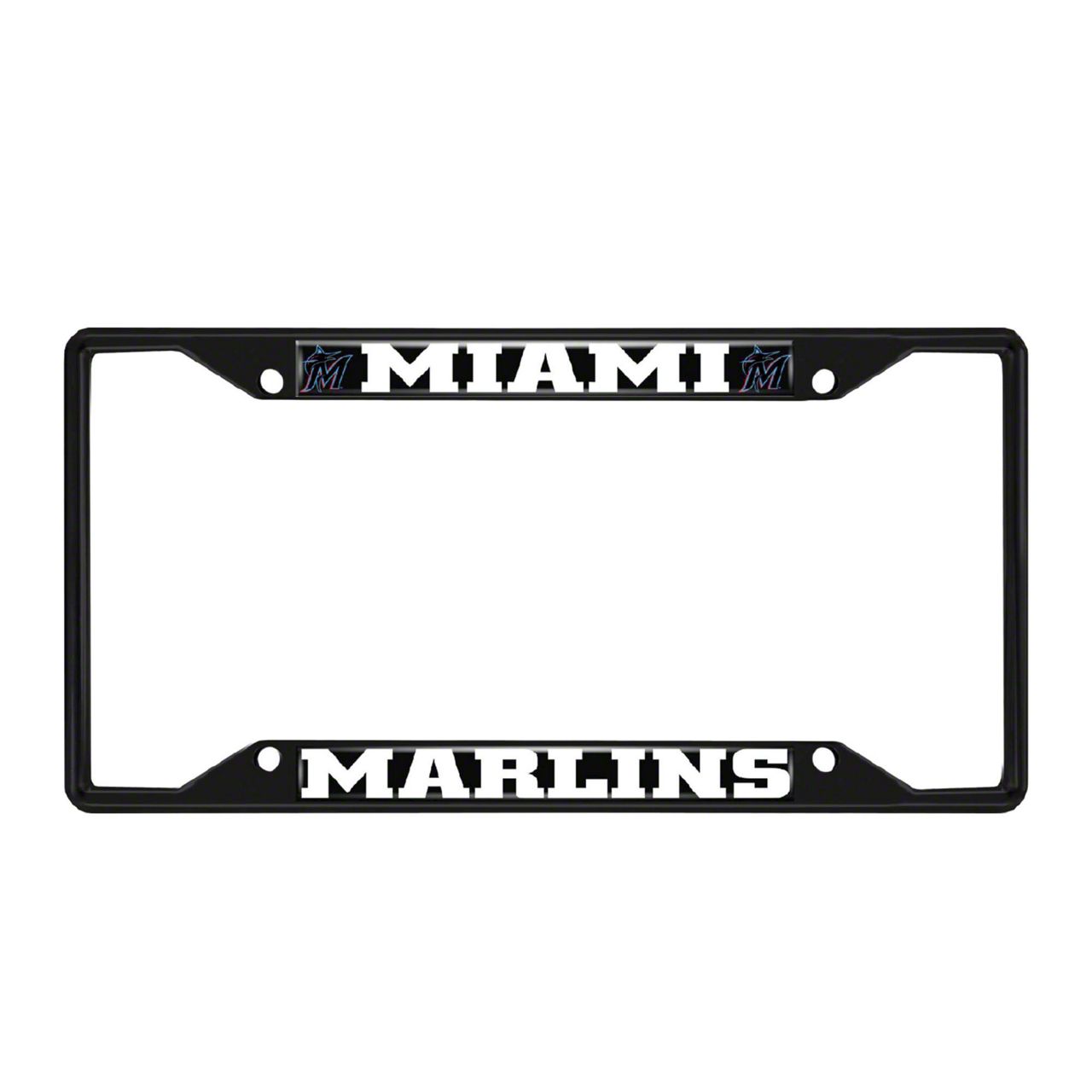 License Plate Frame with Miami Marlins Logo; Black and Black (Universal; Some Adaptation May Be Required)