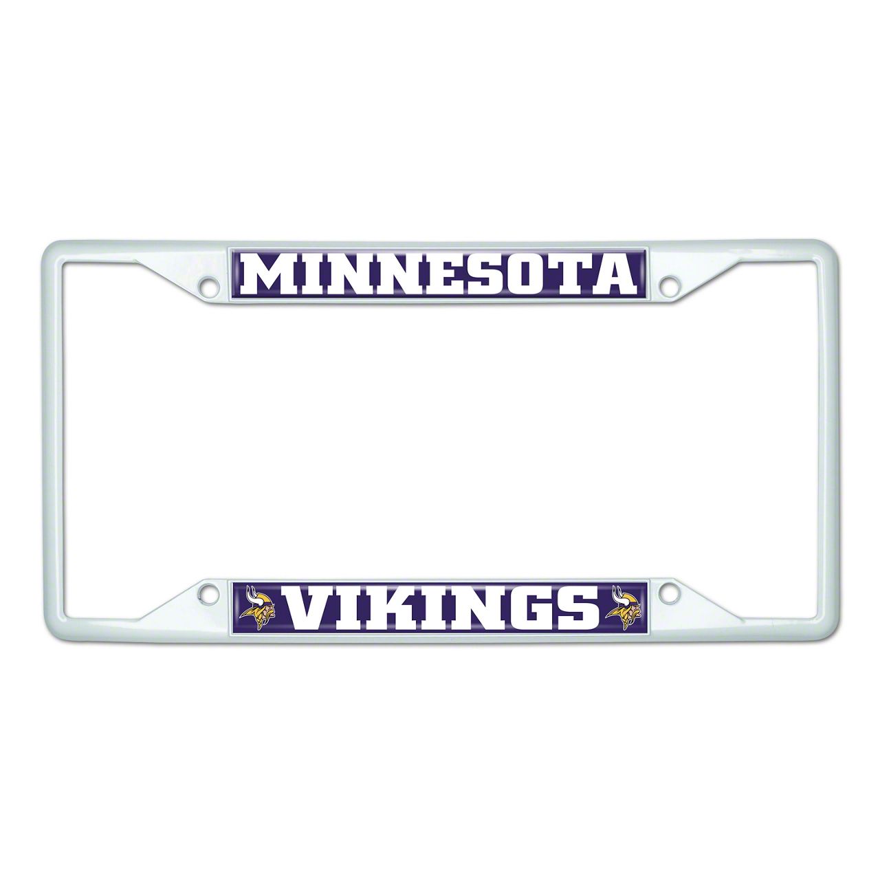 License Plate Frame with Minnesota Vikings; White (Universal; Some Adaptation May Be Required)
