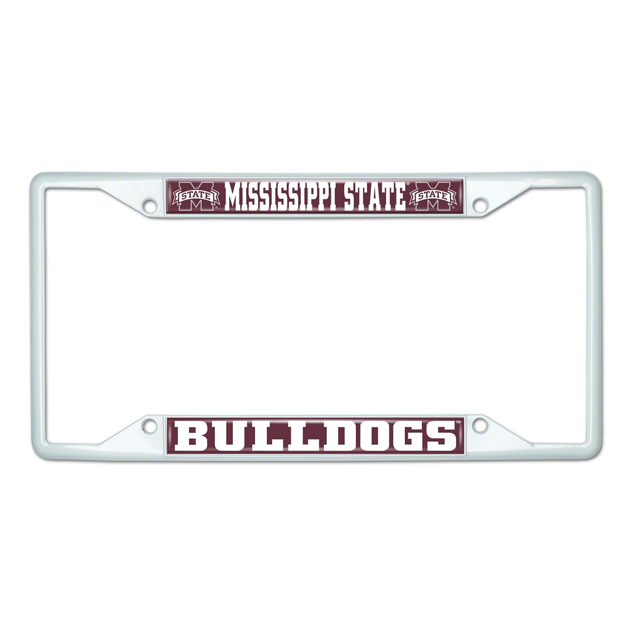 License Plate Frame with Mississippi State; White (Universal; Some Adaptation May Be Required)