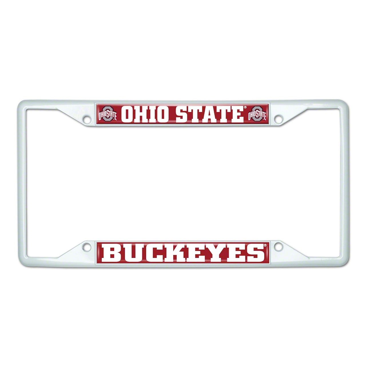 License Plate Frame with Ohio State; White (Universal; Some Adaptation May Be Required)