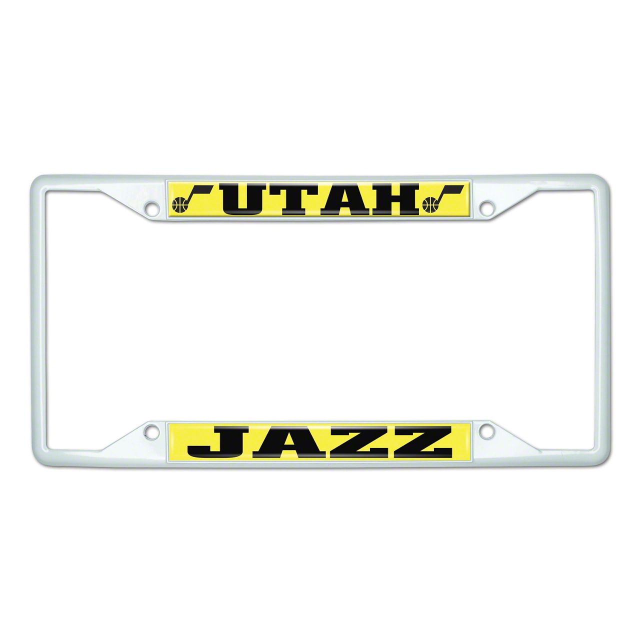 License Plate Frame with Utah Jazz; White (Universal; Some Adaptation May Be Required)