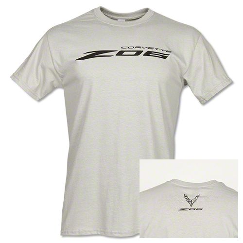 Men's T-Shirt with C8 Z06 Logos Front and Back; Silver