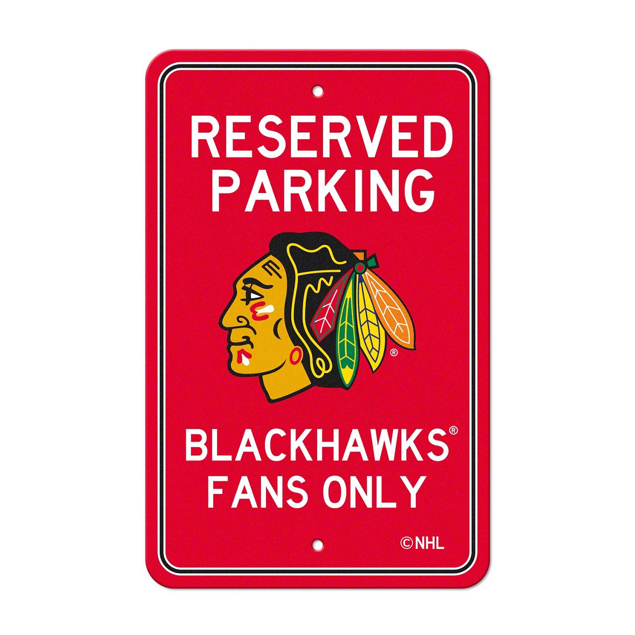 Reserved Parking for Fans Only! This 18in. x 12in. parking style sign is the perfect décor piece for any fan's basement, room, office or tailgate. This sign is lightweight plastic, featuring team colors and logos, as well as 2 pre-drilled holes for convenient hanging. Show everyone what fans are the best!