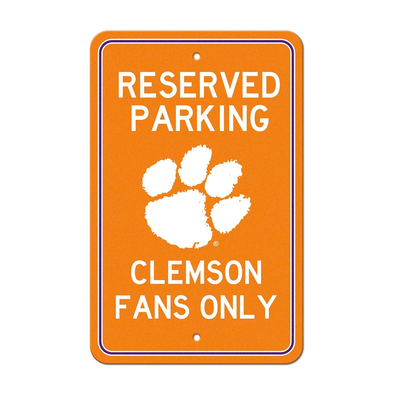 Reserved Parking for Fans Only! This 18in. x 12in. parking style sign is the perfect décor piece for any fan's basement, room, office or tailgate. This sign is lightweight plastic, featuring team colors and logos, as well as 2 pre-drilled holes for convenient hanging. Show everyone what fans are the best!