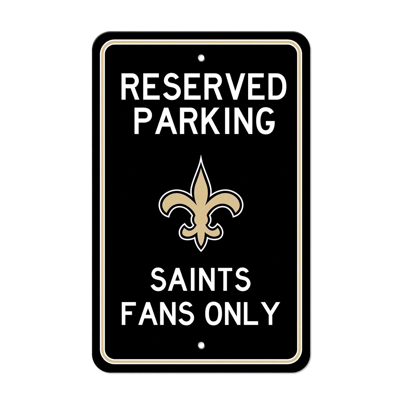 Reserved Parking for Fans Only! This 18in. x 12in. parking style sign is the perfect décor piece for any fan's basement, room, office or tailgate. This sign is lightweight plastic, featuring team colors and logos, as well as 2 pre-drilled holes for convenient hanging. Show everyone what fans are the best!