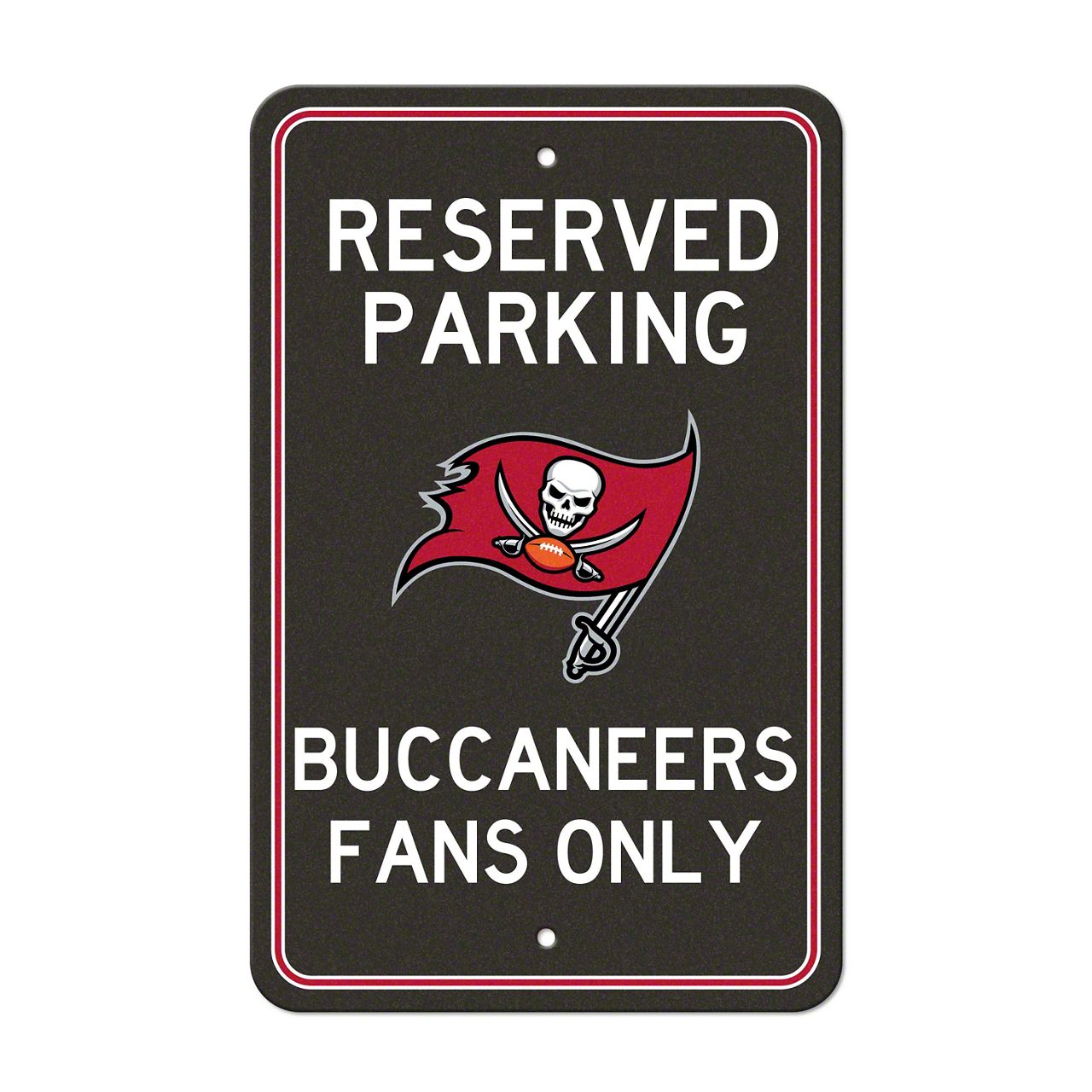 Reserved Parking for Fans Only! This 18in. x 12in. parking style sign is the perfect décor piece for any fan's basement, room, office or tailgate. This sign is lightweight plastic, featuring team colors and logos, as well as 2 pre-drilled holes for convenient hanging. Show everyone what fans are the best!