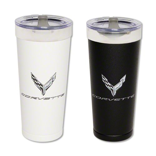 Stainless Steel Thermal Tumbler with C8 Contrasting Logos; White