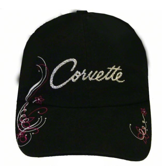 Ladies Glitter Corvette Script Cap - Black