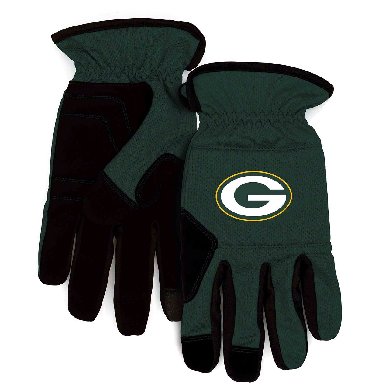 Work Gloves with Green Bay Packers Logo; Green/Black (Universal; Some Adaptation May Be Required)
