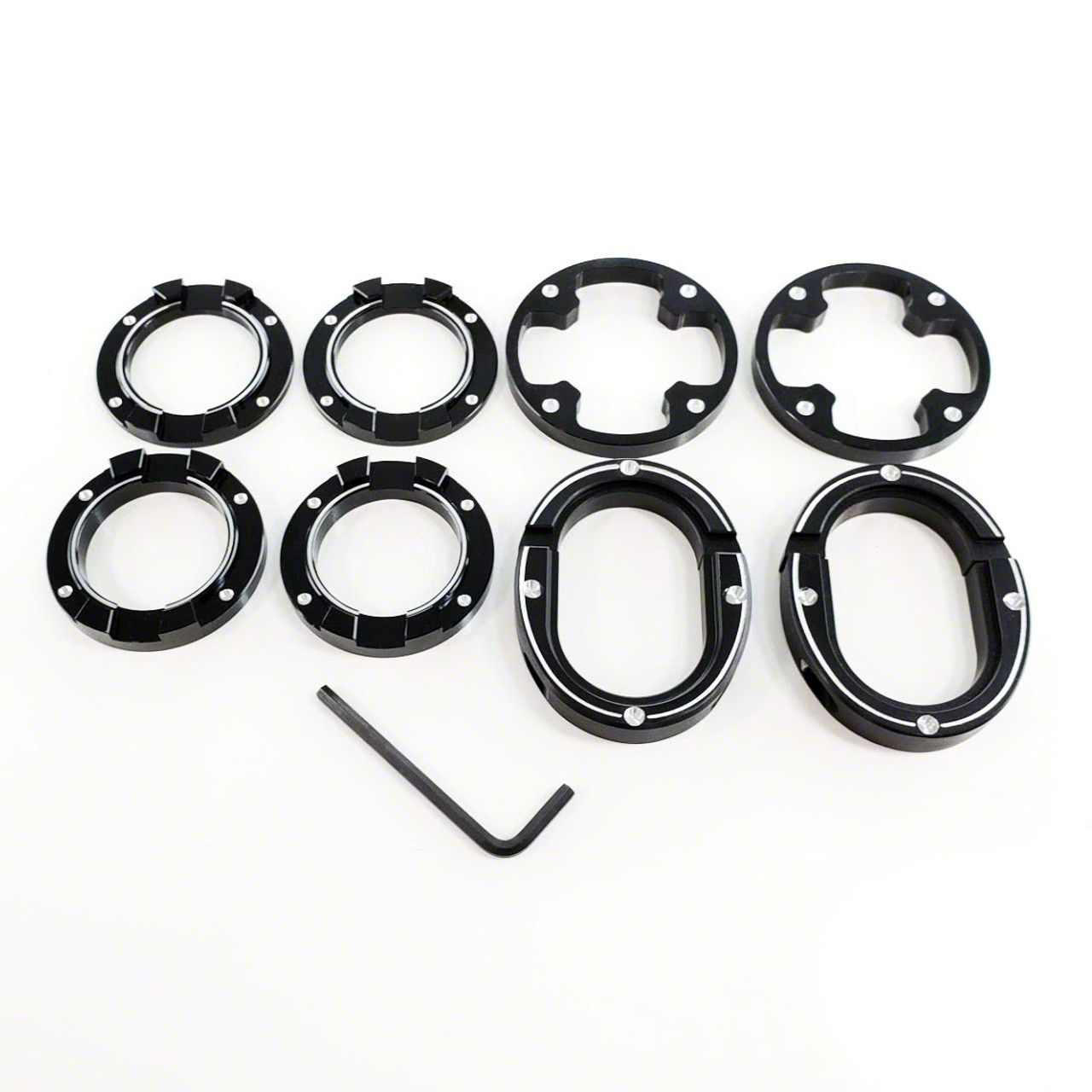 Construction and Appearance. Each component of this kit is CNC-machined from high-quality billet aluminum, ensuring a precise fit and exceptional durability. The kit features a machined finish that is both sleek and resistant to corrosion, providing long-lasting performance and a professional appearance.