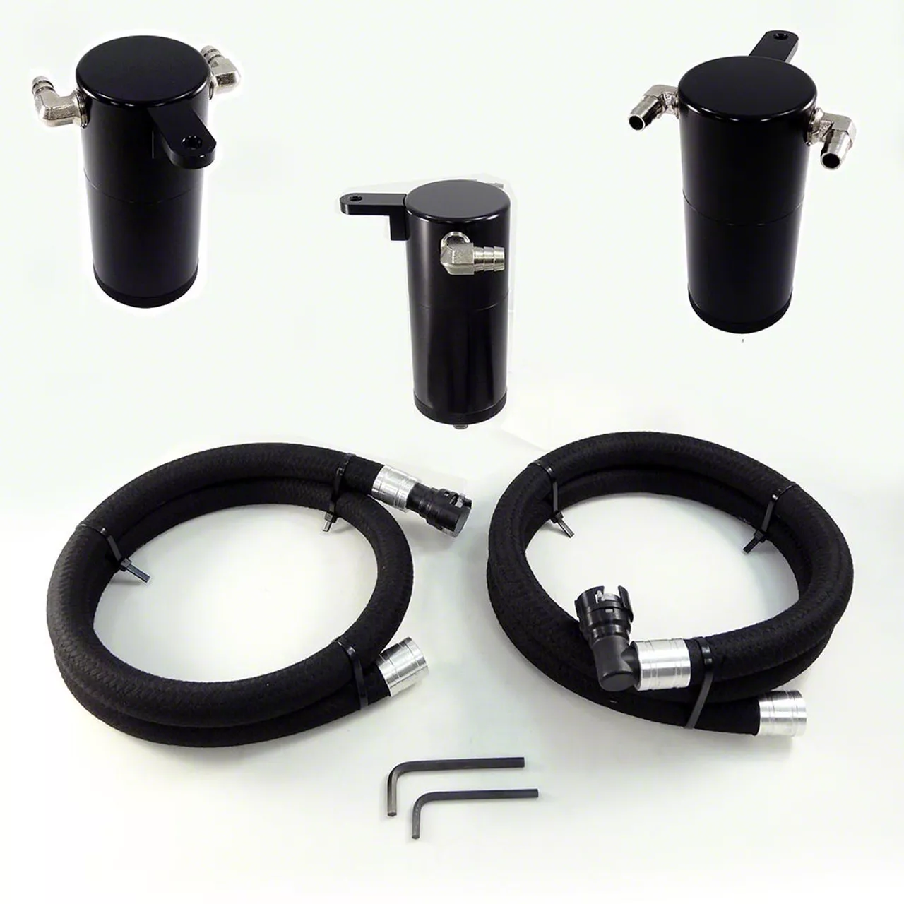 Construction and Appearance. Built from high-quality CNC-machined billet aluminum, this catch can offers durability and a show-quality satin finish. The black color adds a sleek, professional look, making it a great addition to any engine bay.