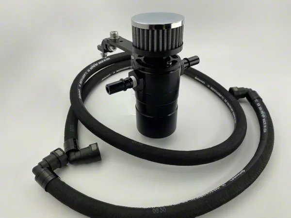 Construction and Appearance. Constructed from CNC-machined billet aluminum, this breather tank offers a perfect blend of strength and lightweight performance. The sleek, high-quality black finish complements any engine bay, providing a clean and professional look. Integrated with braided 5/8 hoses and fittings, this system ensures a secure and aesthetically pleasing setup.