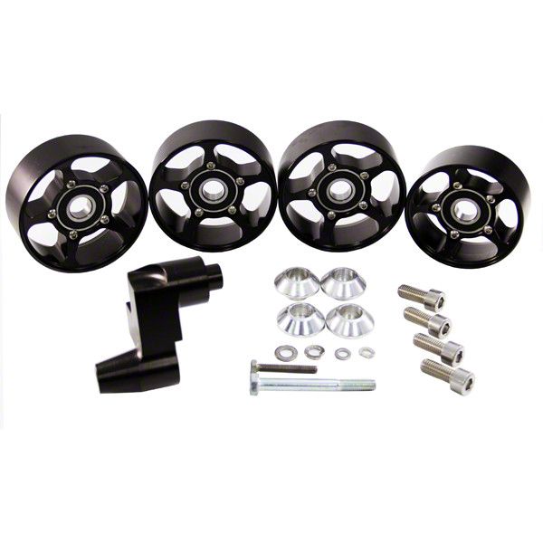 Construction and Appearance. Crafted from high-quality billet material, this idler bracket pulley kit is built for superior strength and durability. The matte black finish adds a sleek, aggressive look while offering corrosion resistance for long-lasting performance under extreme conditions.