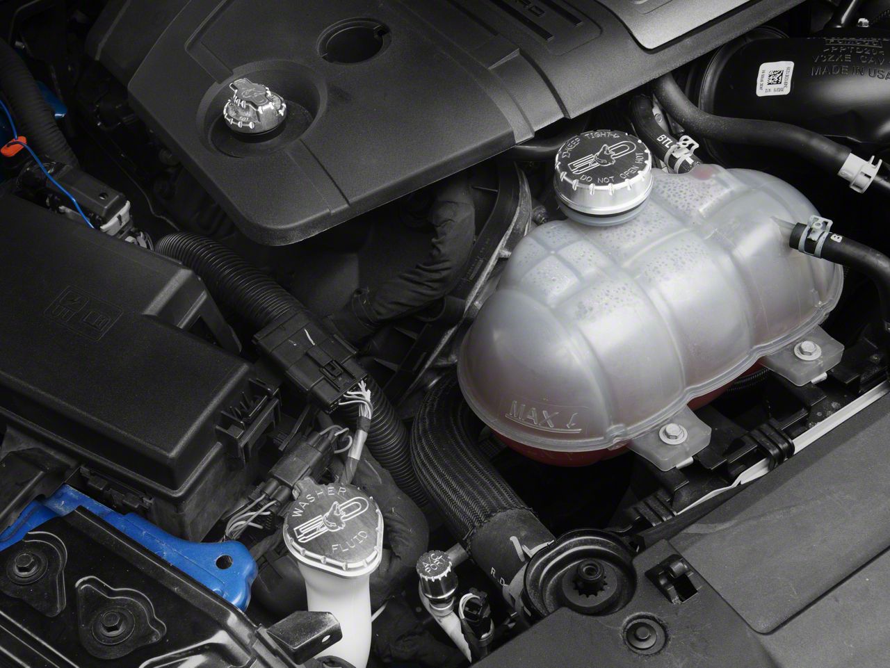 Design. The UPR Products Howling Coyote Engine Cap Covers, with their satin finish, not only enhance the look of your Mustang GT's engine bay but also add a touch of elegance and sophistication. This upgrade is designed to impress, offering a custom look that sets your vehicle apart. The sleek, reflective surface of the satin finish catches the light beautifully, making your engine bay a standout feature at car shows or even just when popping the hood for friends. It's an affordable way to add a premium feel to your car.
