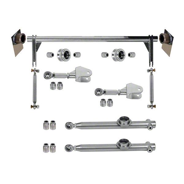 Superior Construction. With its raw metal and polished chrome finish, this suspension handling kit not only improves the performance but also the appearance of your vehicle's undercarriage. The components are CNC machined and TIG welded for maximum durability and strength. The inclusion of a threaded adjuster system allows for precise adjustments, ensuring that you can fine-tune your vehicle's handling to match your driving style and conditions. The use of high-quality materials and advanced manufacturing techniques results in a kit that is both aesthetically pleasing and incredibly functional.