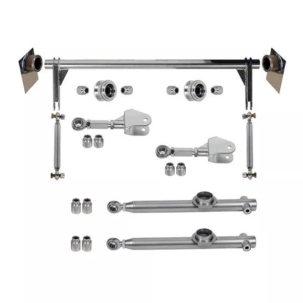 Enhanced Dynamics. The UPR Products Pro Series Suspension Handling Kit is a comprehensive upgrade designed to significantly enhance the stability and performance of your Mustang, excluding the Cobra models. This rear model kit is engineered to improve the overall handling of the vehicle, providing a more responsive and controlled driving experience. Crafted from 4130 Chromoly tubing and heat-treated steel, the kit includes adjustable lower and upper control arms, an anti-roll bar with roller bearings, and a spherical housing bushing kit, all of which contribute to a noticeable improvement in vehicle dynamics.