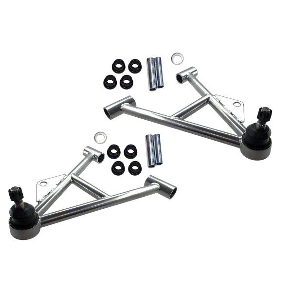 Construction and Features. Crafted from 0.120-wall DOM steel tubing, these A-arms feature a polished chrome and matte black finish for a sleek and durable appearance. CNC machined and TIG welded, they are built to withstand rigorous use, while Zerk fittings allow for easy maintenance, ensuring long-lasting functionality.