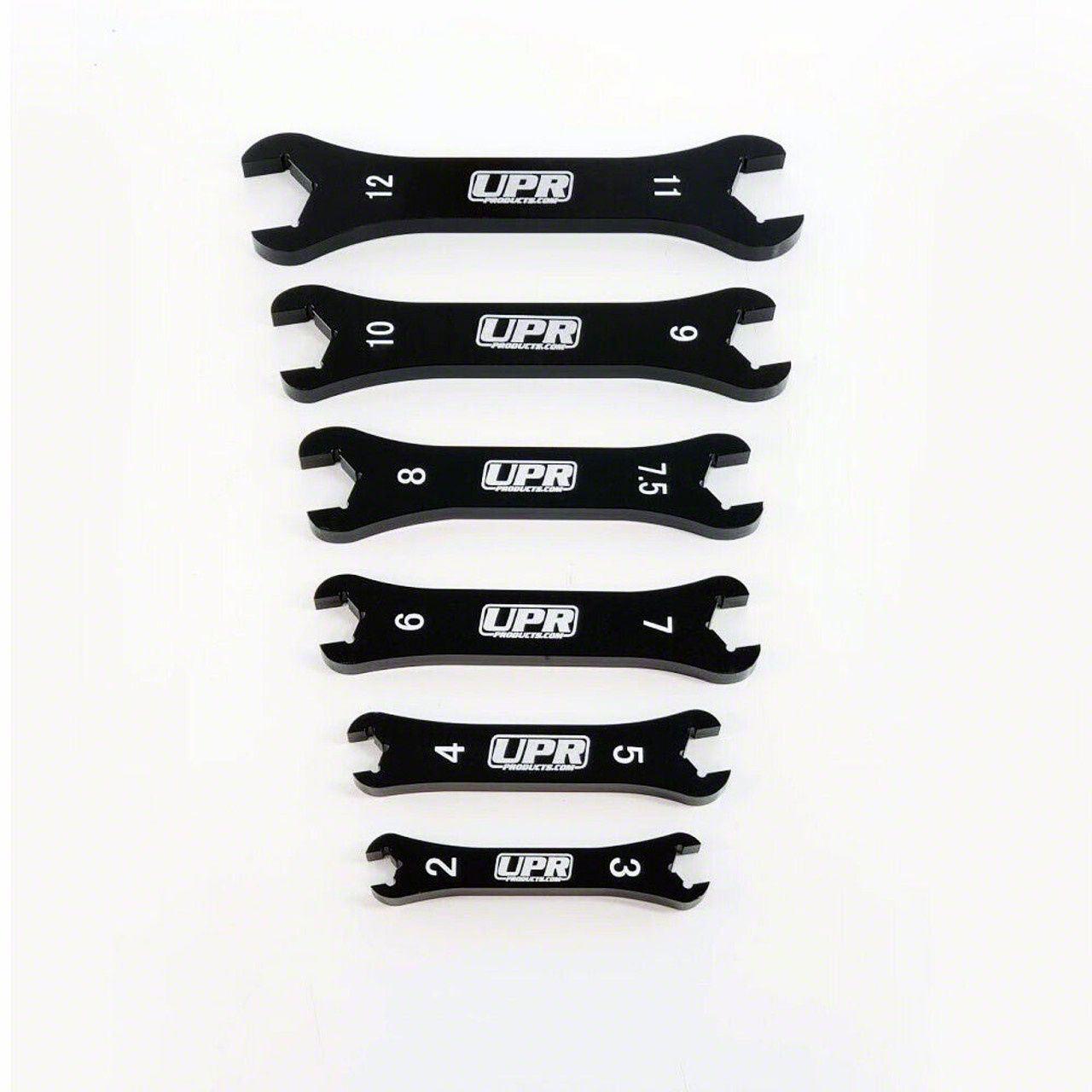 These Eliminate the need to worry about is this a S or B style fittings. As you know one specified size AN wrench does not fit all. With AN fitting there's a "B Nut" and an "S Nut" size. A -8AN wrench can fit a -8AN hose perfectly, when another brand or different run of -6AN fittings do not fit the same wrench you just used. That is when you ran into a B Nut to the S Nut situation. These wrench sets includes all in between wrench sizing so this will eliminate the need for additional wrenches for sizes that should have already worked with your original wrench purchase. This set includes the following sizes 2, 3, 4, 5, 6, 7, 8, 9, 10, 11, and 12. With all the new manufacturers and different fitting sizes this new new AN Wrench Set will cover all your bases and never let you down when installing or working with AN fittings that are different sizes or the A and B suffix. Manufactured from the Strongest 7075 aerospace aluminum that is 3/8" inch / 9.6mm with UV protected black hard anodized finish.