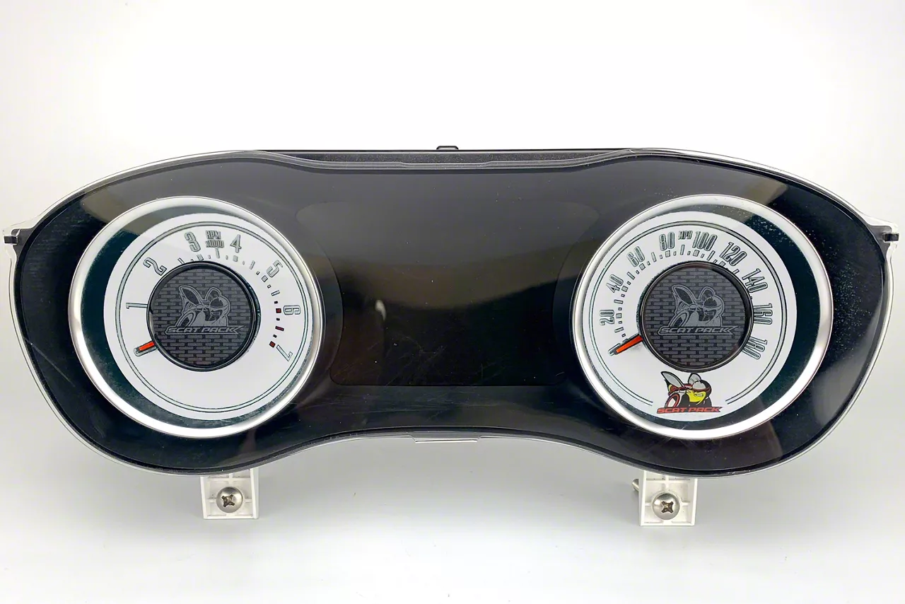 Application. The US Speedo Daytona Edition Gauge Face with Scat Pack Logo; MPH; White fits all 2015-2023 Challenger Scat Pack models.