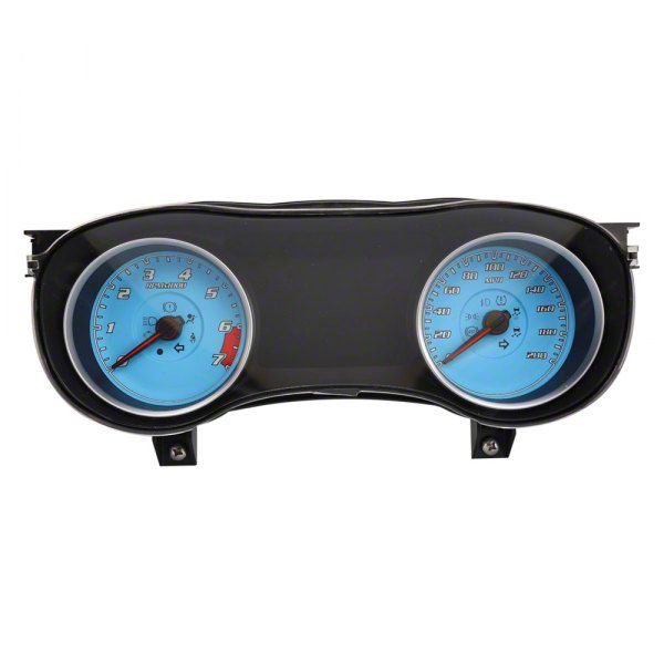 Application. This US Speedo Daytona Edition Gauge Face (200 MPH, Light Blue fits all 2015-2023 Charger, Excluding SRT Hellcat .