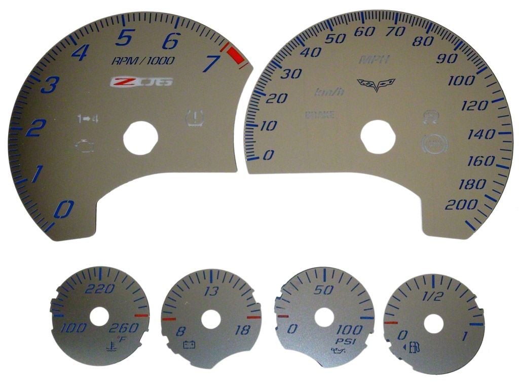 AmericanMuscle no longer carries the US Speedo Stainless Edition Gauge Face; KMH; Blue (06-13 Corvette C6 Z06). Please check out 1997-2004 C5 Corvette Interior for an updated selection.