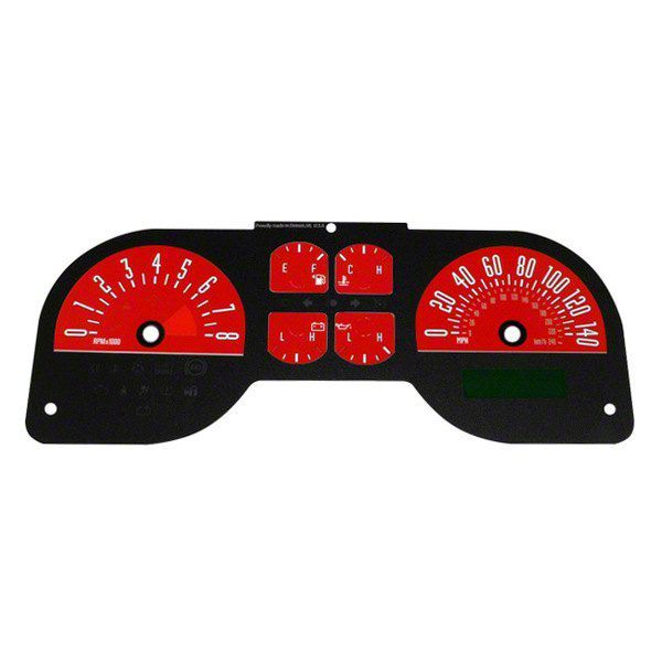 Application. This US Speedo Daytona Edition Gauge Face; MPH; Red fits 2005-2009 Mustang GTs.