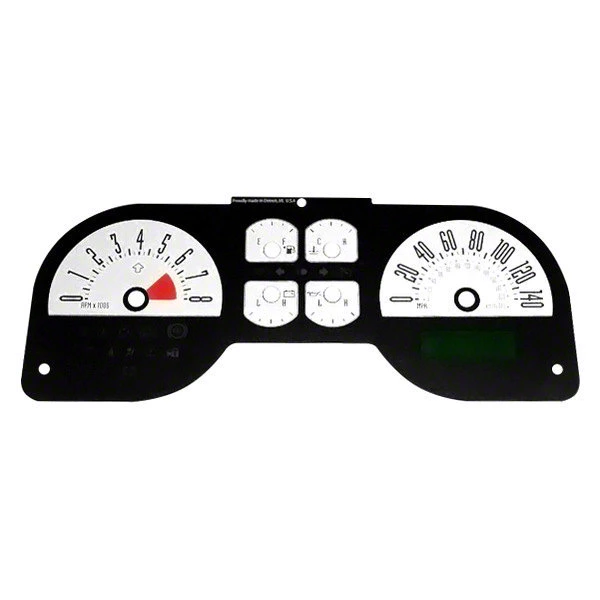 Clean Modern Design. Upgrade the look and feel of your Mustang GT's interior with the US Speedo Daytona Edition Gauge Face; MPH; 6-Gauges White. Featuring MPH readings for 6 gauges, this gauge face provides a stylish and modern look to your dashboard. Crafted from high-quality polycarbonate construction, this gauge face is durable and long-lasting, capable of withstanding the wear and tear of everyday use. The white color provides a clean and clear display, making it easy to read and understand your vehicle's readings.