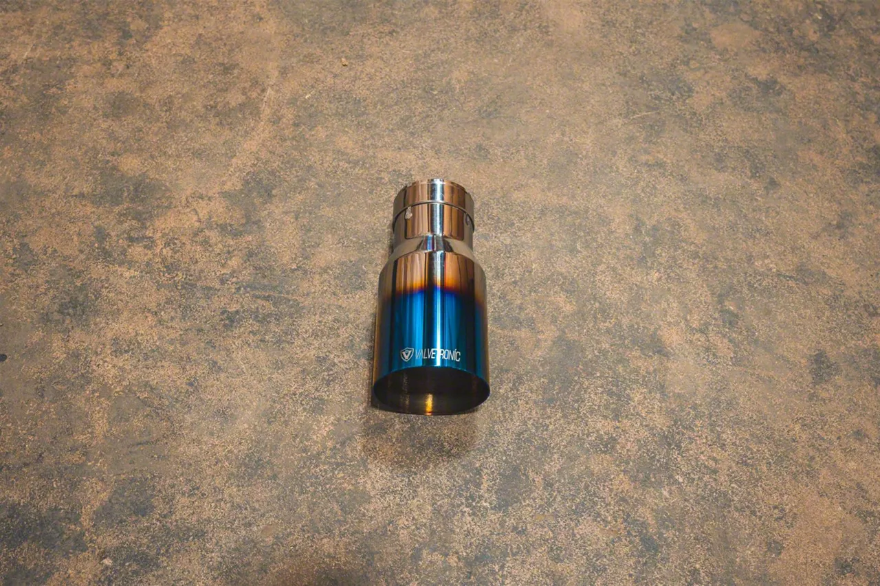 Sound and Style. Elevate your vehicle's aesthetic and enjoy an enhanced performance with the Valvetronic Designs Exhaust Tip. This premium exhaust product is designed to enhance your vehicle's performance and style. With an outer diameter of 3.50 inches, this exhaust tip is perfectly compatible with a 2.50-inch tailpipe, ensuring a seamless fit. Its single-wall construction with a burnt finish adds a touch of sophistication to your vehicle's appearance.