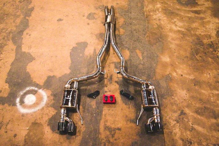 Top-Notch Exhaust Performance. Your high-performing vehicle deserves an exhaust system that can keep up with all the power. The Valvetronic Designs Valved Sport Cat-Back Exhaust System with Black Tips boasts state-of-the-art technology that provides you with complete control over the exhaust's sound and volume. It features a center resonator that lowers rasp levels to deliver a neat and smooth sound for the driver and passers-by. This system is compatible with your vehicle's factory electronic valve control system, ensuring seamless integration and hassle-free installation.