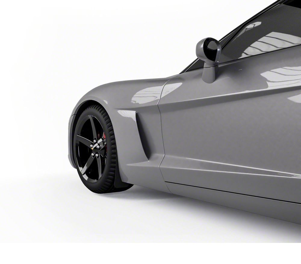 Protection. The textured black front Mud Flaps provide good defense against mud, road debris, and other pollutants. These materials are blocked, which helps protect the paint and body of the vehicle from corrosive elements and scratches. This is particularly beneficial for Corvette owners who drive in a variety of road conditions or go on outdoor activities.