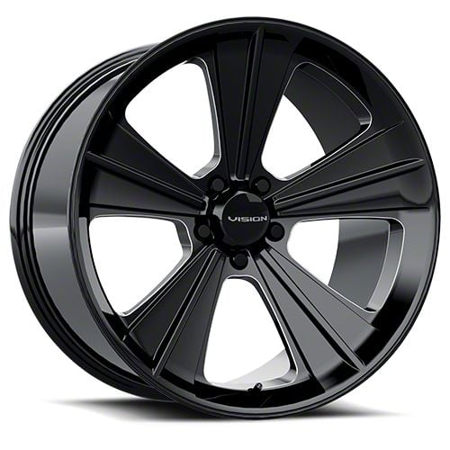 This 20x11 Vision Wheel Missle Gloss Black Milled Wheel; Rear Only; 20x11; 40mm Offset is completed in a high-quality gloss black finish with steel milled accents that will be the envy of everyone. For added protection and looks, there is a clear coat designed to handle whatever the road, or beyond, throws at it.