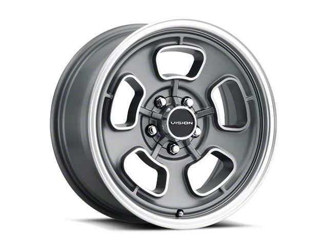 This 17x8 Vision Wheel Shift Satin Grey with Machined Face/Lip Wheel; 17x8; 19mm Offset is completed in a high-quality satin gray finish with steel machined accents that will be the envy of everyone. For added protection and looks, there is a clear coat that can withstand the rigors of daily driving.