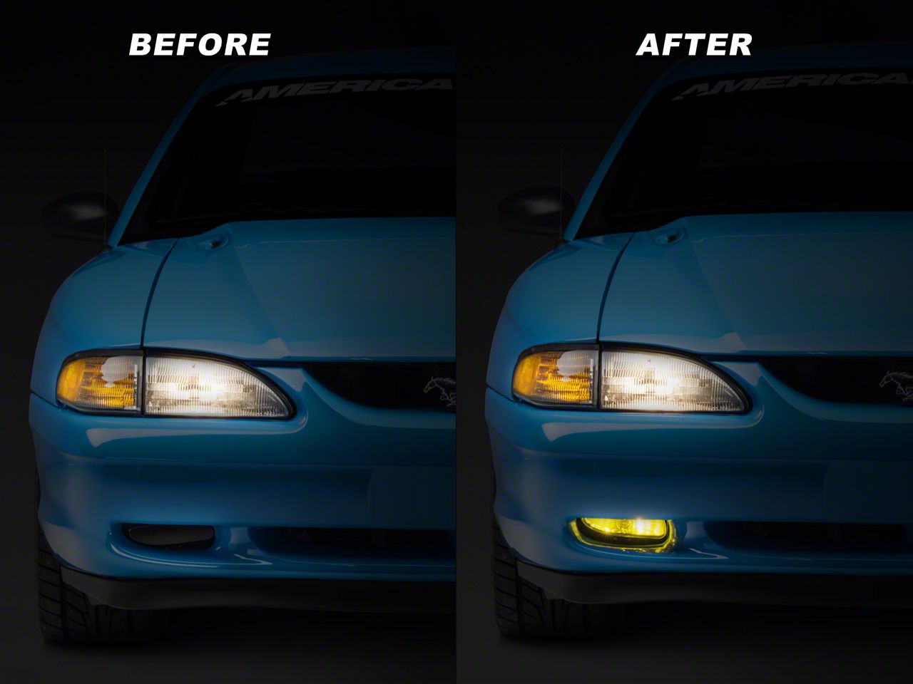 AmericanMuscle no longer carries the Yellow Fog Light LED Conversion Kit; 893 (94-04 Mustang; Excluding 03-04 Cobra). Please check out 1979-1993 Foxbody Mustang Lights for an updated selection.