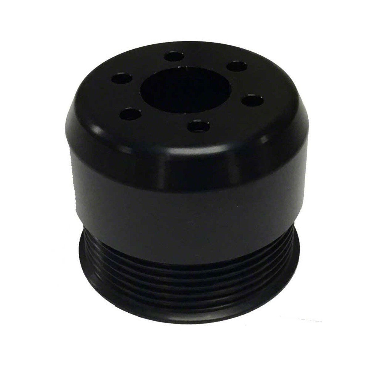 Construction and Appearance. Manufactured using high-quality aluminum, this pulley is engineered for both strength and durability under high-stress engine conditions. It features a sleek black anodized finish that adds corrosion resistance while giving it a clean, performance-oriented look under the hood.