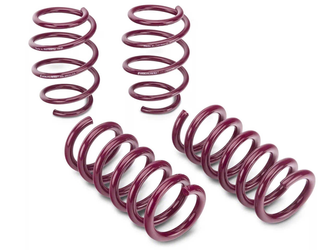 Performance Handling. Installing a set of Vogtland Progressive Rate Sport Plus Springs will lower your 2015-2026 S550 Fastback Mustang's center of gravity, which will help reduce squat during acceleration, body roll in the corners, and excessive nose-dive under hard braking. Vogtland Sport Springs are ideal for daily driving, street, and even occasional track use.