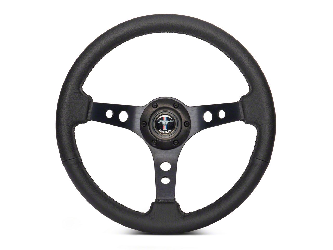 Elite Aesthetic. Give your Mustang the sleek and sporty style it deserves with the Volante S6 Sport Steering Wheel Kit with Pony Emblem. This premium steering wheel features a textured leather grip and anodized black steel centerpiece embellished with the Ford Pony emblem. This sporty steering wheel will get you feeling pumped for your next drive.