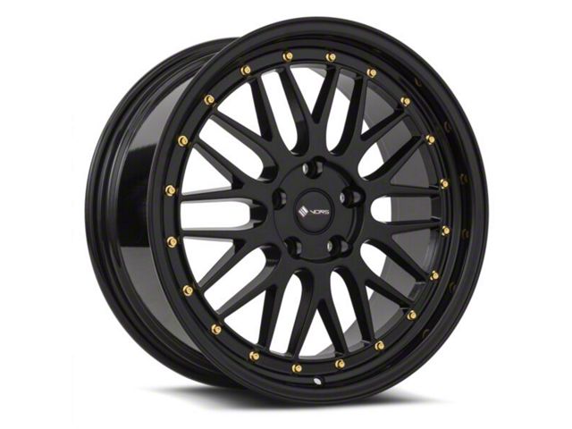 Vors VR8 All Black Gold Rivet Wheel; 19x8.5. The Vors VR8 All Black Gold Rivet Wheel offers a striking balance of style and refinement. Its unique design accentuates the vehicle's aesthetic, while the premium construction underscores its robust nature. This wheel is a perfect choice for those seeking both elegance and a strong visual statement.