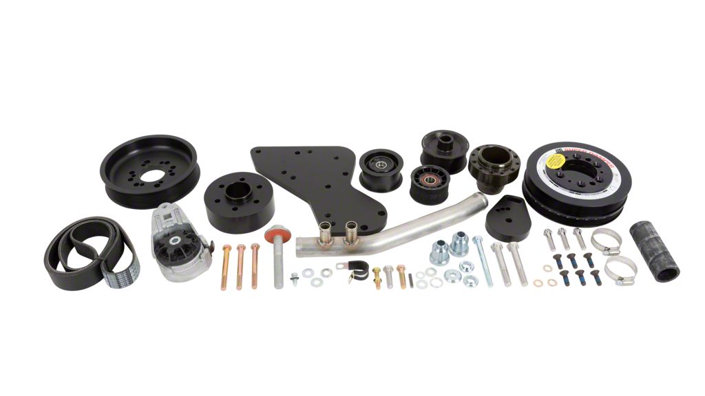 All Hardware Included. This supercharger drive-belt assembly includes everything necessary to upgrade your drive-belt system, including replacement idlers, spacers, a stainless steel radiator tube, a 7-inch crankshaft pulley, and all required hardware for installation.